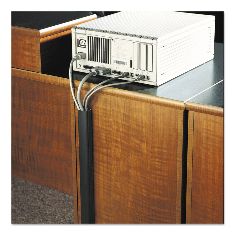Eliminates unsightly clutter created by multiple wires and cords. Mounts vertically or horizontally on furniture, baseboards and walls. Locking-latch keeps wires securely in place. Non-locking accommodates larger wires. Self-adhesive backing for easy application. 48" long, can be cut to size. 1.5" Locking Channel. Cable Management Type: 1.5" Locking Channel; Closure Type: Locking Latch; Color(s): Black; Color Family: Black.