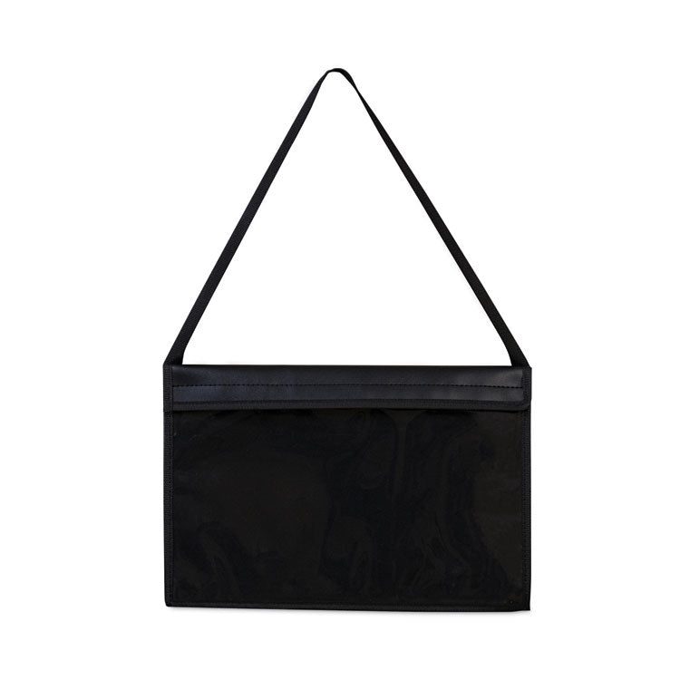 Store, protect and organize your instructions, production schedules, inventory cards, work orders and much more. The convenient strap allows you to hang the job ticket on a car mirror or factory machine, while you are working on the job. Great for hooks, pegs, vehicle mirrors or machinery. Super heavyweight holder has stitched seams for long-lasting utility. Keep the information with the job! This product will be cheerfully replaced with one of equal value if defective in materials, manufacturing or packaging at the time of purchase. Except for such replacement, this product is sold without warranty or liability even though defect, damage or loss is caused by negligence or other fault. Black Back -- Black Stitching & 24" Strap. Open on the long side and stores oversized items, such as license plates, while keeping them secure with the hook and loop closure that runs along the entire edge of the top flap. Load Orientation: Side; Sheet Capacity: 1; Sheet Protector Type: Display; Insert Size: 13 x 8.5.