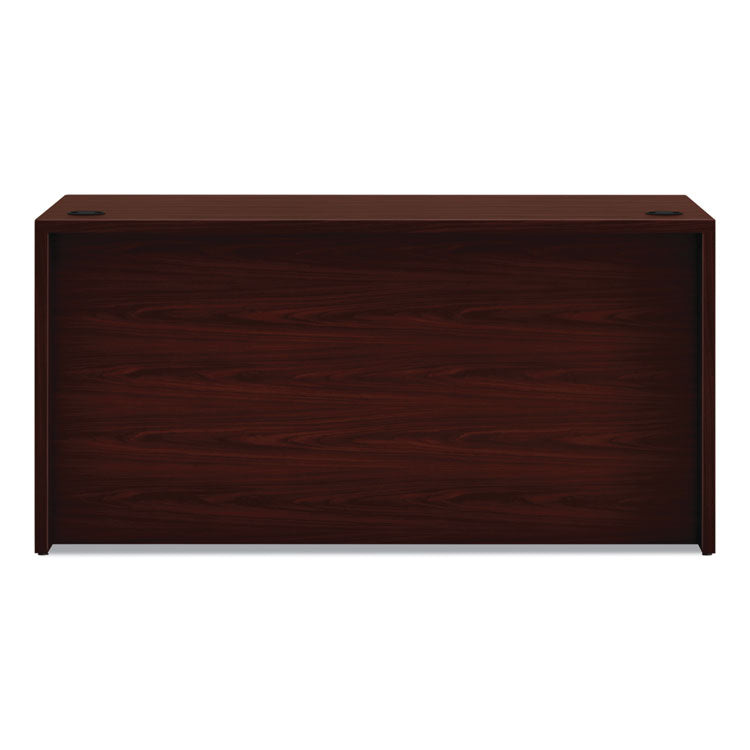 Hard-working, good-looking and built to survive a lifetime of overtime. 10500 Series™ Double Pedestal Desks feature premium, scratch-and stain-resistant, thermal fused laminate surfaces that stand up to just about anything: dropped objects, spills, even boiling liquids. All drawers operate on smooth-rolling ball-bearing suspension systems to ensure reliable access to your materials. File drawers extend fully and accommodate letter- or legal-size hanging files; spacious box drawers extend three-quarters. Clean, square corners and flat-edge profiles deliver a classic, streamlined look that integrates seamlessly with almost any HON® office suite or workstation component. HON® "One Key" core removable locks make re-keying quick and easy. Full-height modesty panel provides extra privacy, and two worksurface grommets make it easy to route and conceal your cables and power cords. Series Name: HON® 10500 Series™; Worksurface/Base Color: Mahogany; Color Family: Mahogany; Worksurface Shape: Rectangular.