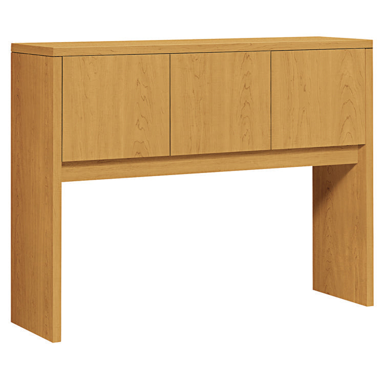 Keep your clutter behind closed doors! Durable woodgrain laminate is scratch-, stain- and spill-resistant for years of trouble-free performance. Clean, straight edges deliver a streamlined look. Enclosed storage behind self-closing, adjustable hinged doors. Valance and wire access facilitate optional task lighting. Color(s): Harvest; Color Family: Oak; Overall Width: 48"; Overall Depth: 14.63".