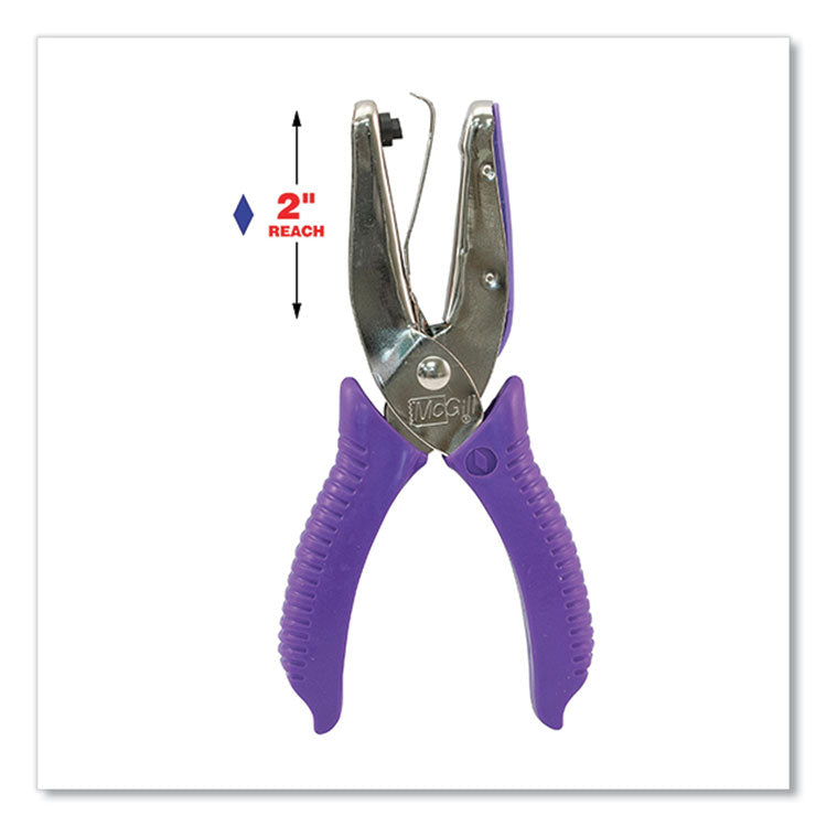 Punches diamond shape holes in up to 15 sheets of 20-lb paper. Ergonomic, removable, washable hand grips. Removable clipping receptacle. Sheet Capacity: 15; Operating Method: Manual; Number of Holes: 1; Clippings Receptacle: Removable.
