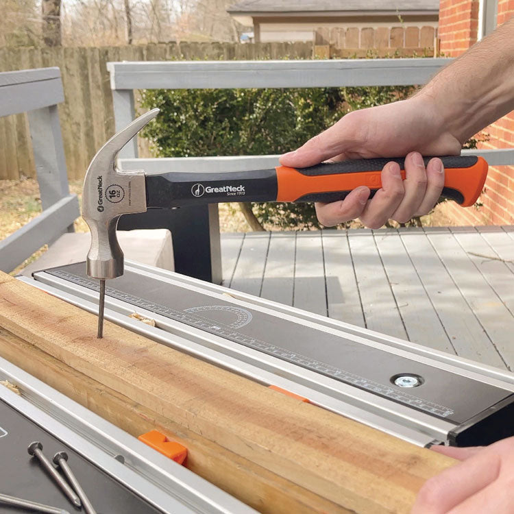 The GreatNeck Claw Hammer with fiberglass handle and curved claw provides maximum striking power and de-nailing torque, making it the perfect hammer for your household construction jobs. Hammer/Mallet Type: Carpenter; Tool Head Type: Claw; Head Material: Forged Steel; Handle Type: Rubber Grip.