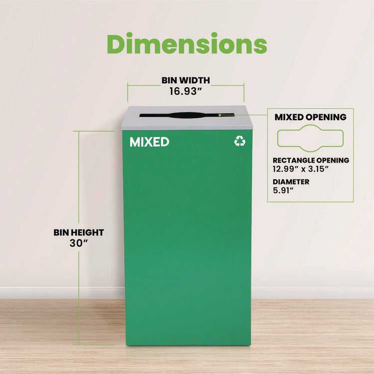 29 Gallon Trash/Recycling Cans, Steel, Green Mixed Recycling Can with Mixed Lid