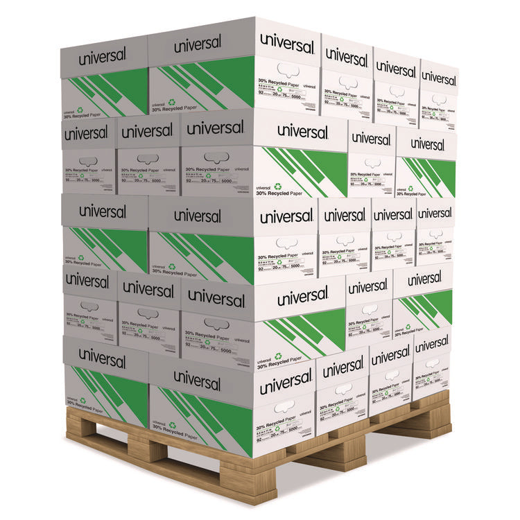 30% Recycled Copy Paper, 92 Bright, 20 lb Bond Weight, 8.5 x 11, White, 500 Sheets/Ream, 10 Reams/Carton, 40 Cartons/Pallet