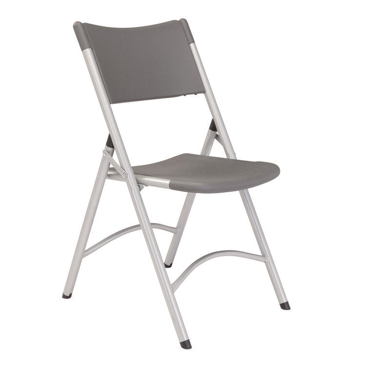 Made for true efficiency and stability, the 600 Series blow-molded, resin-plastic folding chair features a heavy-duty powder-coated 19-gauge tubular frame and a large contoured seat and backrest for your comfort. Two cross braces both in front and in back for added support. V-tip stability plugs provide added reinforcement at the frame's junction and replaceable glides prevent floor damage. Lightweight for easy transport, it is stain-resistant and perfect for easy set-up and take-down, indoors or outdoors. Recommended Application Area(s): Conference & Meeting; General Office & Task; Healthcare; Guest/Reception & Lounge; Seat Color: Gray; Back Color: Gray; Color Family: Gray.