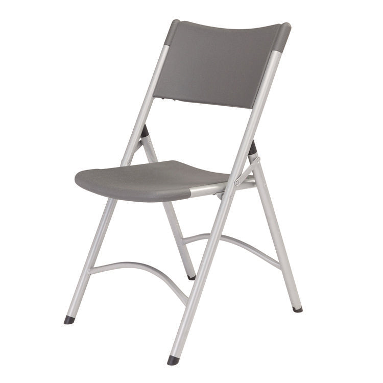 600 Series Heavy Duty Plastic Folding Chair, Supports Up to 500 lb, 18" Seat Height, Gray Seat/Back, Silver Base, 4/Pack