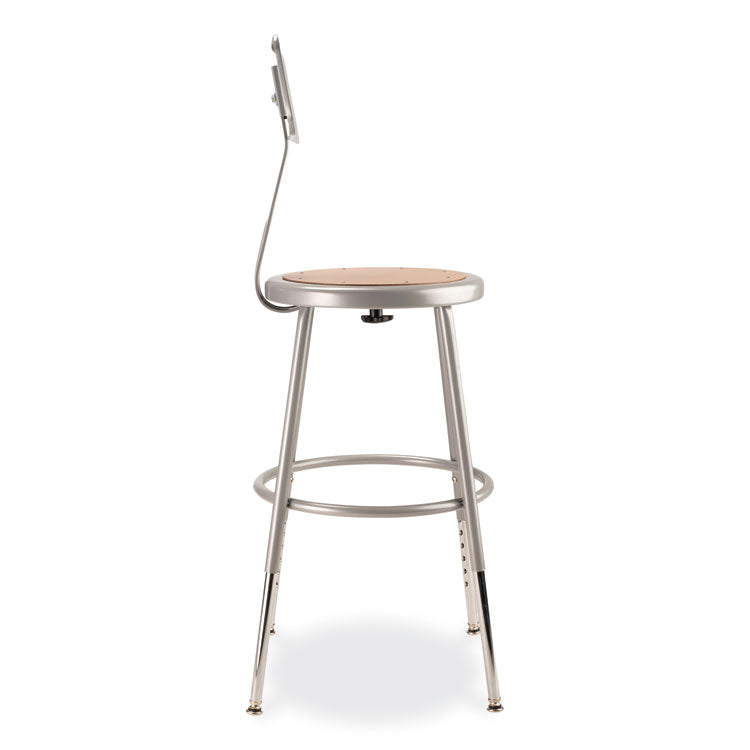The durable construction and classic design of the 6200 Series heavy-duty stools are ideal for hands-on educational settings like art rooms, science labs, home economics or shop classrooms. These reliable stools feature a sturdy frame of 18-gauge steel tubing securely welded to a 14 inch diameter seat pan. Riveted to the pan are firm, round Masonite seats that will not warp, chip or crack as they provide years of dependable use. Footrest rings are securely bonded to each leg with four spotweld contact points. This model features height-adjustable legs extending from 19 inches to 27 inches in 1-inch increments and adjustable backrests that can be moved two inches up/down and forward/back. Recommended Application Area(s): Classroom & Training; General Office & Task; Seat Color: Brown; Back Color: Gray; Color Family: Gray.