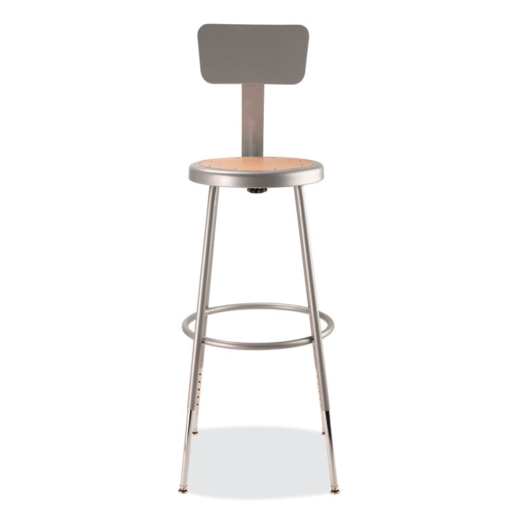 The durable construction and classic design of the 6200 Series heavy-duty stools are ideal for hands-on educational settings like art rooms, science labs, home economics or shop classrooms. These reliable stools feature a sturdy frame of 18-gauge steel tubing securely welded to a 14 inch diameter seat pan. Riveted to the pan are firm, round Masonite seats that will not warp, chip or crack as they provide years of dependable use. Footrest rings are securely bonded to each leg with four spotweld contact points. This model features height-adjustable legs extending from 25 inches to 33 inches in 1-inch increments and adjustable backrests that can be moved two inches up/down and forward/back. Recommended Application Area(s): Classroom & Training; General Office & Task; Seat Color: Brown; Back Color: Gray; Color Family: Gray.