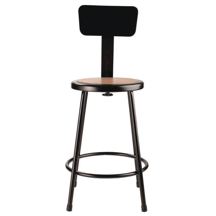 The durable construction and classic design of the 6200 Series heavy-duty stools are ideal for hands-on educational settings like art rooms, science labs, home economics or shop classrooms. These reliable stools feature a sturdy frame of 18-gauge steel tubing securely welded to a 14" diameter seat pan. Riveted to the pan are firm, round Masonite seats that will not warp, chip or crack as they provide years of dependable use. Footrest rings are securely bonded to each leg with four spotweld contact points. This model features adjustable backrests that can be moved up/down and forward/back. Recommended Application Area(s): Assembly/Repair & Technical Task; Classroom & Training; Seat Color: Brown; Back Color: Black; Color Family: Black.