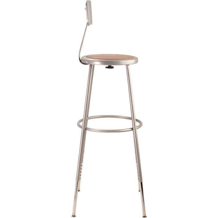 The durable construction and classic design of the 6200 Series heavy-duty stools are ideal for hands-on educational settings like art rooms, science labs, home economics or shop classrooms. These reliable stools feature a sturdy frame of 18-gauge steel tubing securely welded to a 14" diameter seat pan. Riveted to the pan are firm, round Masonite seats that will not warp, chip or crack as they provide years of dependable use. Footrest rings are securely bonded to each leg with four spotweld contact points. This model features height-adjustable legs and adjustable backrests that can be moved two inches up/down and forward/back. Recommended Application Area(s): Classroom & Training; General Office & Task; Healthcare; Seat Color: Brown; Back Color: Gray; Color Family: Gray.