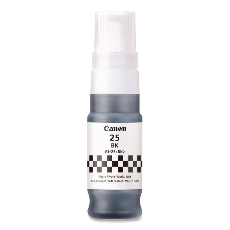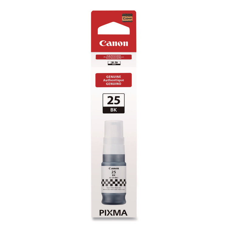 Canon® consumables genuinely make a difference. Canon® genuine ink produces high-quality monochrome and color output for all your home and office needs. Specifically designed for select Canon® MAXIFY GX integrated ink tank printers. Device Types: Inkjet Printer; Color(s): Black; Supply Type: Ink Bottle; Market Indicator (Cartridge Number): GI-25.