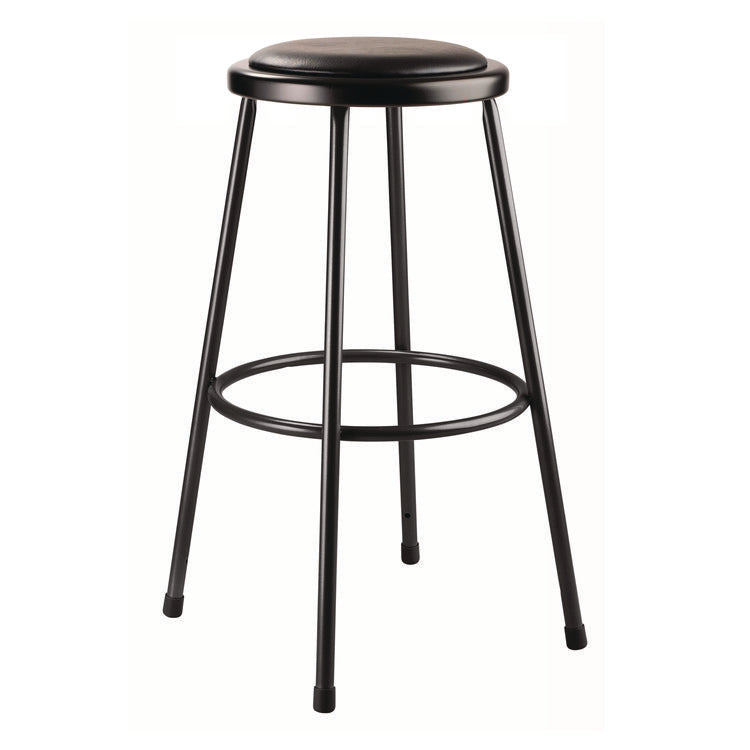 6400 Series Fixed Height Heavy Duty Vinyl Padded Steel Stool, Backless, Supports 500 lb, 30" Seat Height, Black Seat/Base