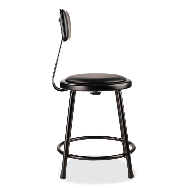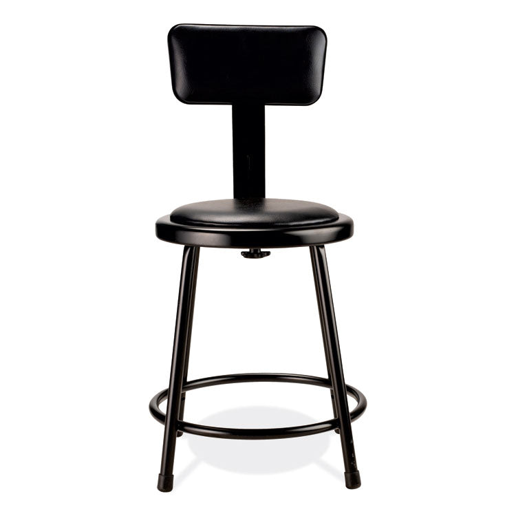6400 Series Heavy Duty Vinyl Padded Stool with Backrest, Supports 300 lb, 18" Seat Height, Black Seat, Black Back, Black Base