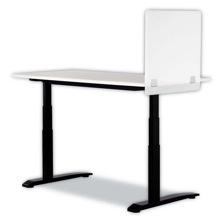 Support social distancing and help workers, customers and guests reduce their exposure to droplets produced by coughing, sneezing and talking by installing Wellness Panels from Safco Products in your office, small business, clinic or hospital. Designed to establish a physical barrier between people to help reduce the spread of germs, each panel is sold separately. Combine two panels to create corner "L" shapes for personal desks or service counters or add a third to build a more isolated, three-sided cove workstation. Install panels on flat-edged surfaces that measure one inch thick or greater using the included screws and steel brackets. Each panel features acrylic construction for simple cleaning and maintenance. Screwdriver required for installation and not included. White—For privacy. Color(s): White; Overall Width: 23.5"; Overall Depth: 2.5"; Overall Height: 23.5".