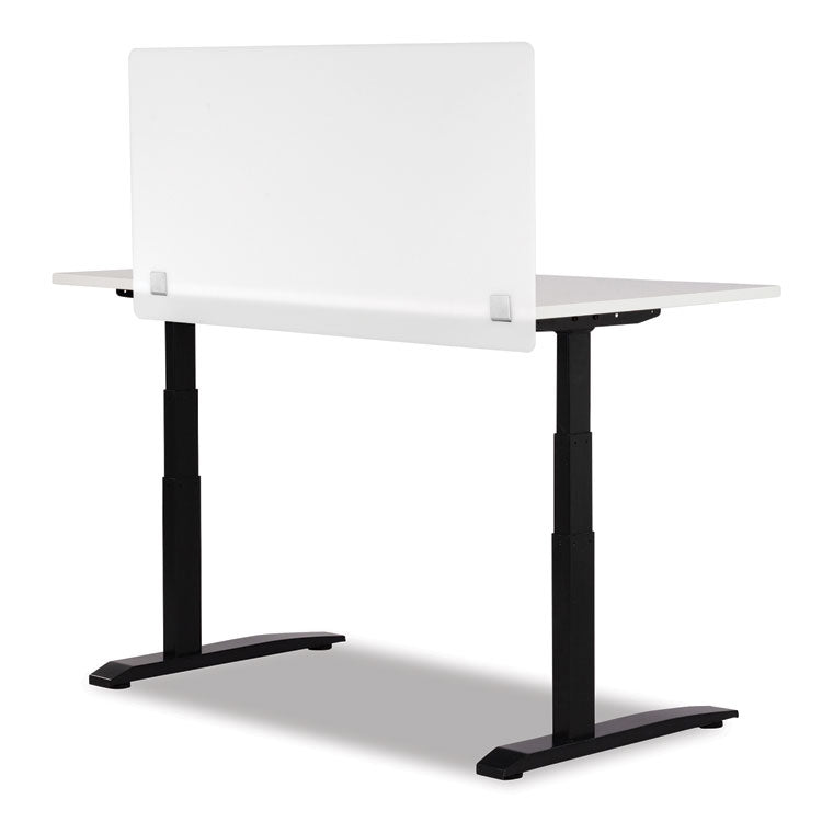 Support social distancing and help workers, customers and guests reduce their exposure to droplets produced by coughing, sneezing and talking by installing Wellness Panels from Safco Products in your office, small business, clinic or hospital. Designed to establish a physical barrier between people to help reduce the spread of germs, each panel is sold separately. Combine two panels to create corner "L" shapes for personal desks or service counters or add a third to build a more isolated, three-sided cove workstation. Install panels on flat-edged surfaces that measure one inch thick or greater using the included screws and steel brackets. Each panel features acrylic construction for simple cleaning and maintenance. Screwdriver required for installation and not included. White—For privacy. Color(s): White; Overall Width: 47.5"; Overall Depth: 2.5"; Overall Height: 23.5".