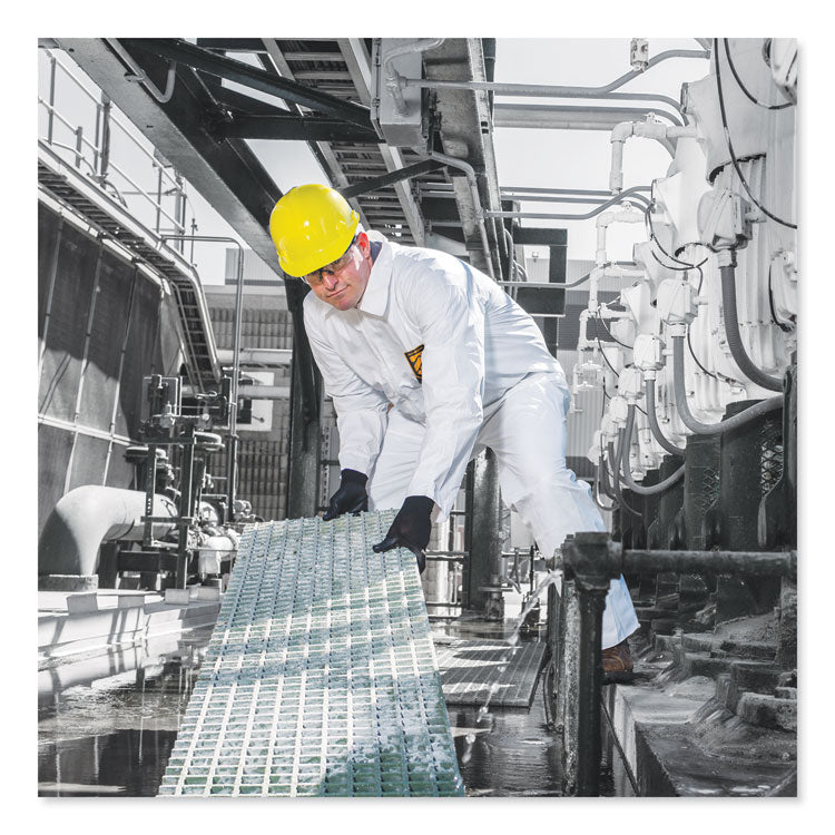 KleenGuard Personal Protective Equipment (PPE) enables rather than inhibits allowing for maximum productivity and safety for you and your employees. KleenGuard A20 Breathable Particle Protection Coveralls are designed to move with you and your employees while protecting against hazardous and non-hazardous dust. These protective garments offer superior particle holdout coupled with unmatched comfort attributes. The A20 fabric is comprised of five layers of stacked barrier protection (SMMMS) against hazardous particles. Features to provide more protection include the seamless front (for primary exposure area), 1 inch zipper flap, an elastic back and elastic wrists and ankles. They feature Reflex design, which offers excellent fit and freedom of movement. The seamless front provides more protection to the primary exposure area. They are a popular choice for dusty environments such as laboratories and remediation, as well as pesticide applications and as decontamination modesty garments. Making the right Personal Protection choice is difficult. Perform with distinction with KleenGuard Personal Protective Equipment (PPE). Zipper Front, Open Wrists and Ankles. Apparel Type: Coverall; Material(s): MICROFORCE* Barrier SMS Fabric; Color(s): White; Color Family: White.