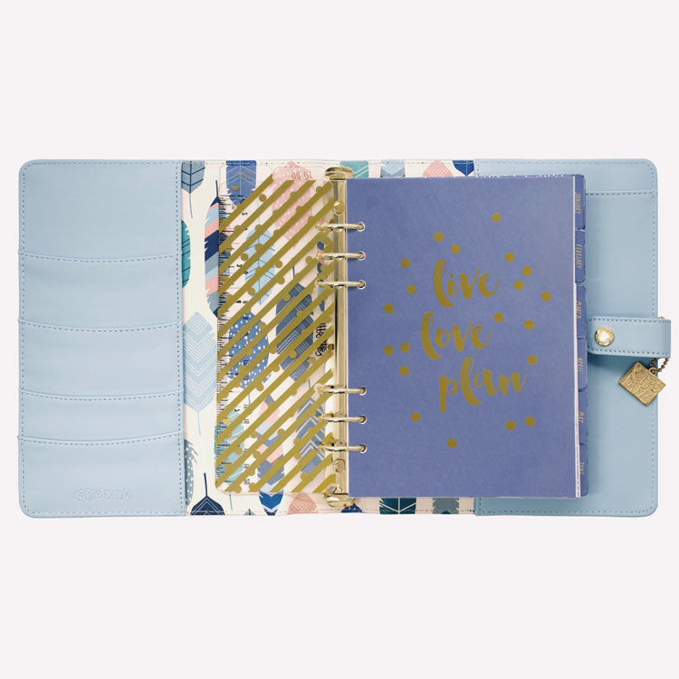 Our A5 planners measuring 5.8 x 8.3 inches are perfect for super-busy schedules, this beautiful planner is here to help you stay on top of things. Use our A5 planner to schedule meetings, classes, birthdays or events. With spaces to help you plan your days, weeks and months our planners have everything you could need for organizational bliss. Plus, it looks super cute too! The best part? All of our planners are undated, this means you can start your planning at any time of the year with no restrictions, simply re-arrange the inserts for optimum organization. Coming complete with 12 monthly tabbed dividers, 12 monthly calendar layouts, 60 horizontal weekly layouts, 12 lined pages, 12 grid pages, 12 plain pages, 2 acetate bookmarks, 1 acetate dashboard, 1 dashboard insert & 3 sticker sheets. The planner is packed full of goodies to get your planning together! People expect more from Pukka Pad products and that's what they get. Dated/Undated: Undated; Calendar Format: Weekly; Calendar Spread Format: One Week per Two-Page Spread; Academic Year: No.
