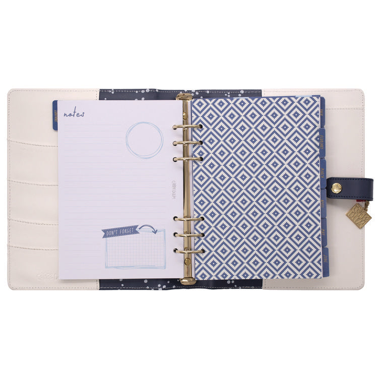 Our A5 planners measuring 5.8 x 8.3 inches are perfect for super-busy schedules, this beautiful planner is here to help you stay on top of things. Use our A5 planner to schedule meetings, classes, birthdays or events. With spaces to help you plan your days, weeks and months our planners have everything you could need for organizational bliss. Plus, it looks super cute too! The best part? All of our planners are undated, this means you can start your planning at any time of the year with no restrictions, simply re-arrange the inserts for optimum organization. Coming complete with 12 monthly tabbed dividers, 12 monthly calendar layouts, 60 horizontal weekly layouts, 12 lined pages, 12 grid pages, 12 plain pages, 2 acetate bookmarks, 1 acetate dashboard, 1 dashboard insert & 3 sticker sheets. The planner is packed full of goodies to get your planning together! People expect more from Pukka Pad products and that's what they get. Dated/Undated: Undated; Calendar Format: Weekly; Calendar Spread Format: One Week per Two-Page Spread; Academic Year: No.