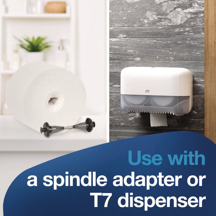Tork® Coreless is a high-capacity coreless toilet paper system for facilities where efficiency, sustainability, and providing a great experience are key. High capacity, reduced storage space, and certified easy-to-use dispensers make it a better alternative to conventional bath tissue and jumbo rolls. These 2-ply tubeless toilet paper rolls fit a wide range of compatible coreless toilet paper dispensers to meet different restroom needs, so the same compact toilet paper refills can be used across the facility. Compared to conventional bath tissue, Tork® coreless rolls hold two times more paper, with no core and no wrap for less waste. Tissue Type: Toliet; Number of Plies: 2; Number of Sheets: 1,000; Length: 14.3".