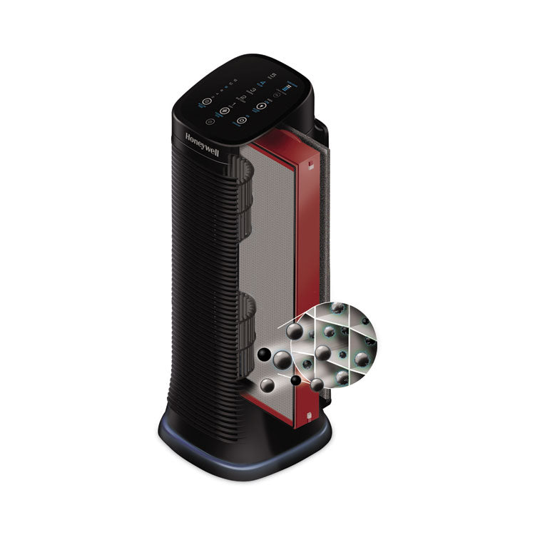 The Honeywell Air Genius 5 Air Purifier features 5 levels of cleaning power and a patented ifD® advanced filtration system that provides exceptional air cleaning performance for large rooms up to 250 square feet. Filter helps capture microscopic airborne particles 0.3 microns and larger such as dust, pollen, pet dander, dust mite debris and smoke. Permanent washable ifD® filter and foam pre-filter for easy maintenance. Air Cleaner Machine Type: IFD; CADR: 161; Maximum Room Size (Square Footage): 250 sq ft; Maximum Room Size: Large.