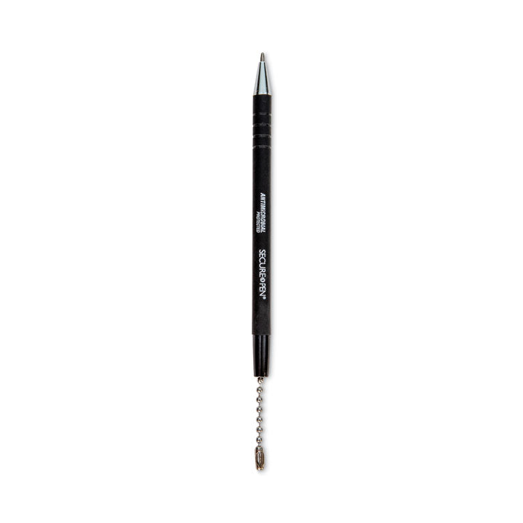 Antimicrobial barrel to resist buildup for sanitary use in high traffic areas. Can be affixed to a counter with the sticky tape. Chain can be extended about 24 inches. Replacement pens can be purchased separately. Pen Sub-Brand & Product Family: Antimicrobial; Pen Type: Ballpoint Counter Pen; Pen Style: Stick; Pen Tip Type: Conical.