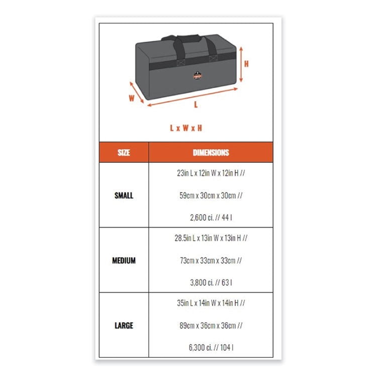 The Arsenal 5020P Standard Gear Duffel Bag is easy to carry and helps organize everything you need for the workday or the weekend. Whether you use it as a way to store your equipment on the job, a hunting bag to trek your gear through the woods, or as a carry-on duffel bag while traveling, you can rely on this utility duffel bag to house and protect your valuables. This lightweight, yet super durable gear bag is made with 600D polyester material to withstand wear and tear for long-lasting performance. Keep your essentials clean and dry with the reinforced water-resistant backing. Heavy-duty ribbed webbing handles and the adjustable padded shoulder straps. A large open main compartment fits all your gear with easy loading and unloading, so nothing is left behind. There are two accessory pockets with zippers on each side to hold smaller items. For Use With: Gear; Color(s): Black; Color Family: Red; Material(s): Polyester.