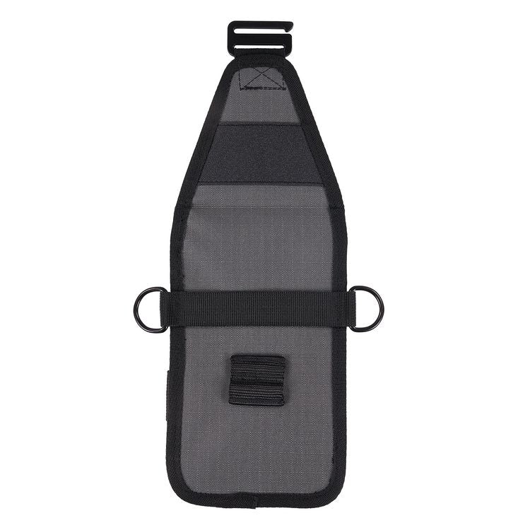 Arsenal 5568 Tool Pouch with Device Holsters loops onto your belt for safe storage and convenient access to various tools and personal items. This multi-use tool pouch is built to last with abrasion-resistant ripstop polyester. This tool holder features four pockets in varying sizes to fit small hand tools and larger, personal items. Three smaller pockets in the front house pens, pencils, markers, zip ties and box cutters while a webbed loop on the front keeps a tape measurer or small tool easily accessible. A larger and deeper pocket sits behind these pockets for barcode scanners or tools. This barcode scanner holder is designed for convenient use with "candy bar" style scanners that do not have a handle. In the rear is a pocket with brushed interior and pull tab to keep cell phones safe and easy to access. Two d-rings on the side clip lanyards or smaller accessories such as glove clips or an ID badge reel. HTO Type: Tool Pouch with Device Holster; Material(s): Polyester; Color(s): Gray; Shape: Rectangular.