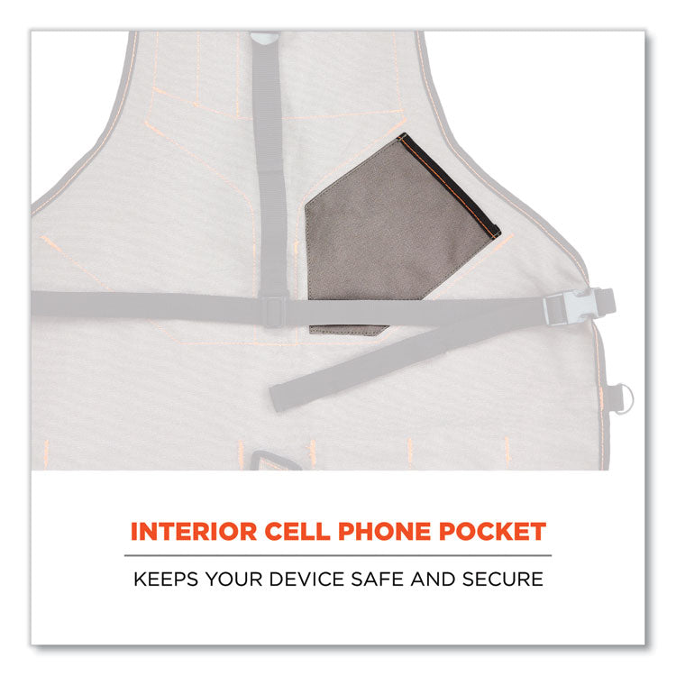 The Arsenal 5705 Heavy-Duty Tool Apron features 13 pockets to keep tools organized and accessible the shop or on the worksite. Made with 14 oz heavy-duty and abrasion-resistant canvas in an extended length for maximum coverage and durability. This tool apron is ergonomically designed with wide shoulder straps for comfortable all-day wear and leg flaps to prevent the long length from interfering with bending, kneeling and maneuvering. One-size-fits-most, it is adjustable to fit a variety of chest and waist sizes with a quick-release buckle closure for easy on/off. HTO Type: Apron; Material(s): Canvas; Color(s): Gray; Shape: Square.