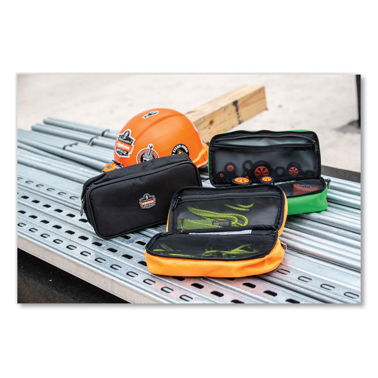 Small buddy organizer with 2-pocket clamshell design is ideal for keeping tools and accessories organized. Store multiple clamshells inside a larger storage container for quick access and increased productivity. HTO Type: Bag; Material(s): Polyester; Color(s): Green; Shape: Rectangular.