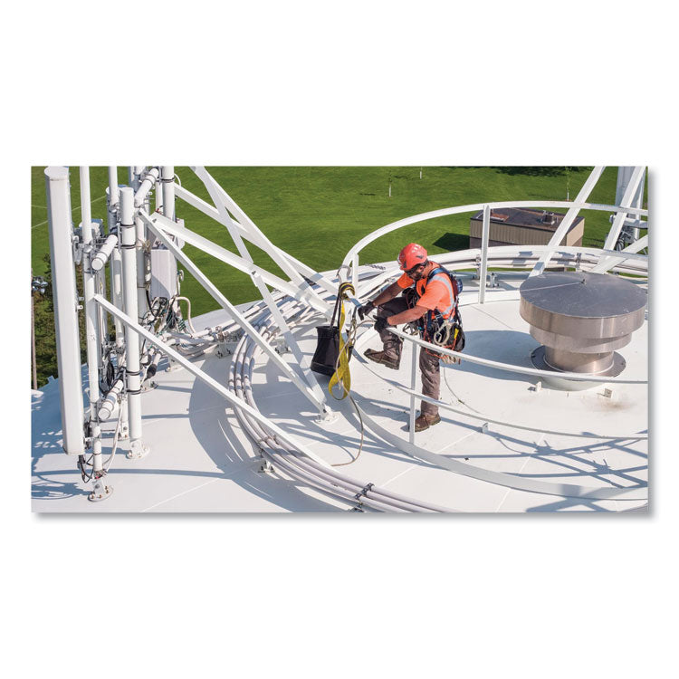 Durable 840D nylon main material bucket with storm drains. Webbing handle for strength and durability with nickel-plated swiveling hook. Capacity Range (Volume) [Max]: 100 lb; Diameter: 12.5"; Material(s): Nylon; Color(s): Black.