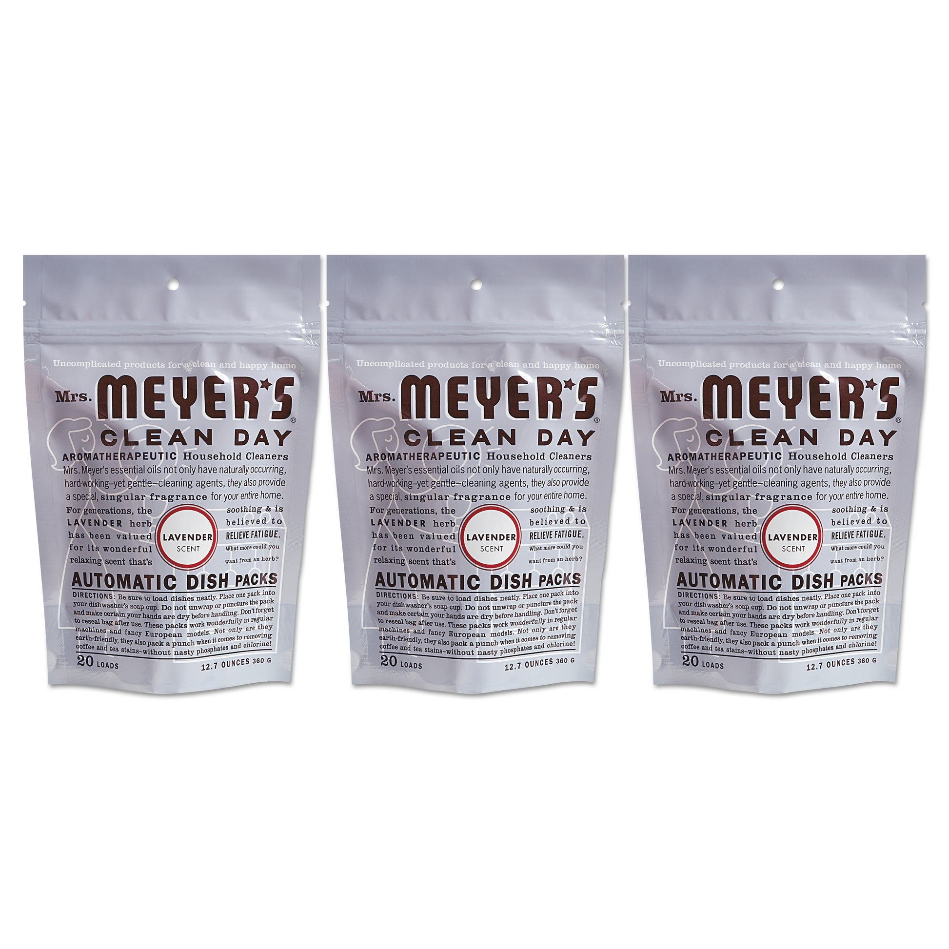 Mrs. Meyer's Clean Day automatic dish packets help your dishwasher produce sparkling dishes, glasses and flatware. Each pack of oxygen bleach formula loads easily in the dishwasher's soap cup and is safe for use in all machines. Clean coffee stains from cups without phosphates or chlorine. Application: Dishwasher Detergent; Applicable Material: Dishes; Glasses; Chemical Compound: Sodium Sulfate; Dirt Types: Food Stains; Grime.
