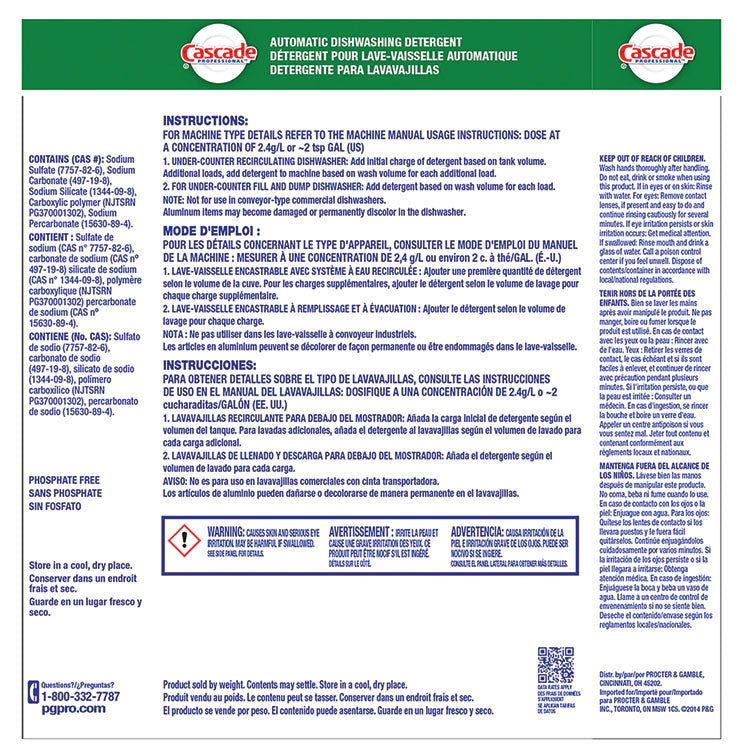 Combine the outstanding cleaning of Cascade dishwasher detergent with the grease-fighting power of Dawn for clean dishes that are automatically clean every time. This professional automatic dishwasher detergent cleans so thoroughly virtually nothing is left behind but pure clean, pure shine. Application: Automatic Dishwasher Detergent; Applicable Material: Ceramics; Enamel; Fiberglass; Glass; Metal; Plastic; Dirt Types: Cooked-On Grease; Food Particles; Oils; Organic Matter; Soil; Scent: Fresh.