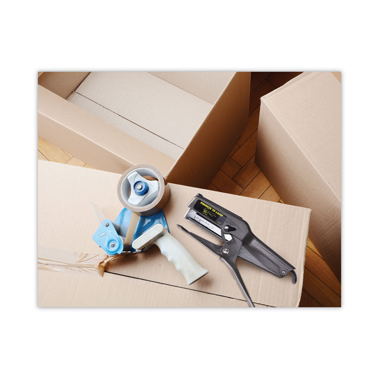 Extreme stapling without the extreme effort. Heavy-duty metal and composite construction ensures superior, lasting strength and performance while stapling up to 45 sheets of paper, light corrugate or plastic. Easy squeeze lever design greatly reduces effort needed for jobs while soft rubber handles provide comfort. No-Jam™ technology prevents staple jams. Staple refills are simple with a removable rear-reload pusher system. Uses 1/4" or 3/8" B8® PowerCrown™ Premium Staples. Ideal for mailrooms, administrators, florists, retail, manufacturing, packaging operations or offices. High Capacity Stapling: No; Flat Clinch Plate: No; Tacking: Yes; Staple Capacity: Full Strip (210 Staples).