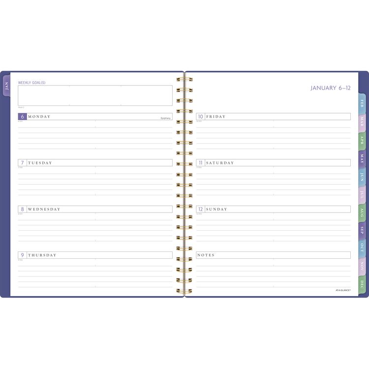 You have things in your life worth planning for. Organize your schedule with the AT-A-GLANCE Badge Weekly Monthly Planner. This thoughtful organizational tool puts you at the control center of your life, offering the freedom you need to plan for each day. Put your best foot forward and plan your time with this stylish Geo planner. Your plans are set! The high-quality paper features ink bleed resistance. Your life is more than just dates in a planner. Each week lets you plan, set and achieve goals, and track important notes. Long-term goals are just as important. Stay ahead of the game with the spacious, tabbed monthly pages. Keep the momentum going with special pages. A double-sided poly pocket stores loose sheets. Comes with a full set of colorful stickers to highlight important events, emphasize priorities and mark special occasions. Sturdy and stylish! Durable poly cover stands up to wear and tear, while the gold twin wire binding helps prevent snags and keeps pages secure. Dated/Undated: Dated; Calendar Format: Weekly; Monthly; Calendar Spread Format: One Week per Two-Page Spread; One Month per Two-Page Spread; Edition Year: 2025 to 2026.