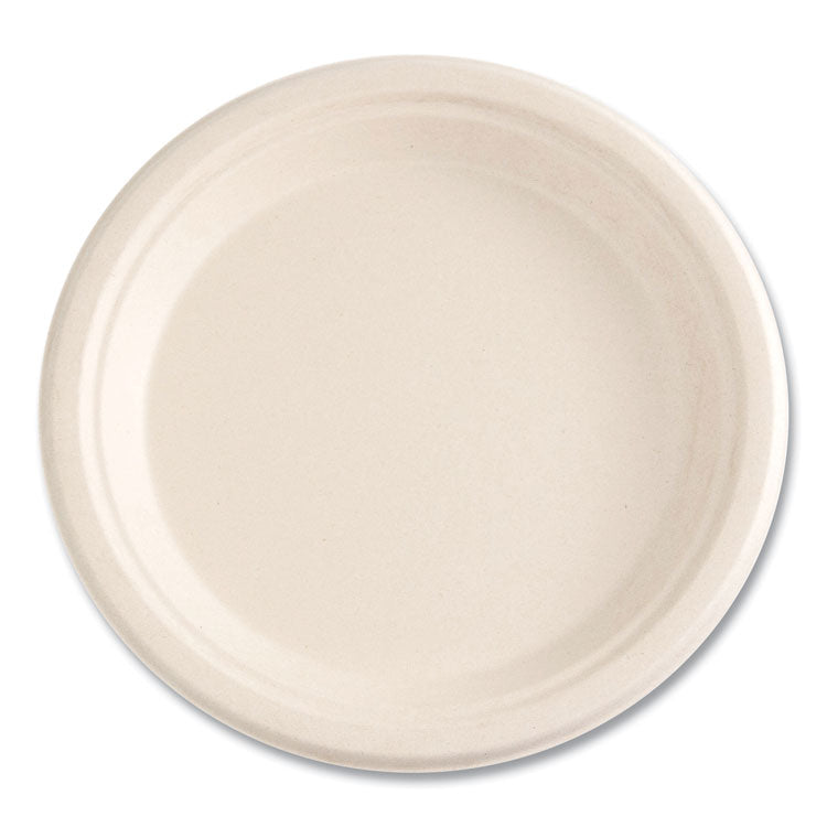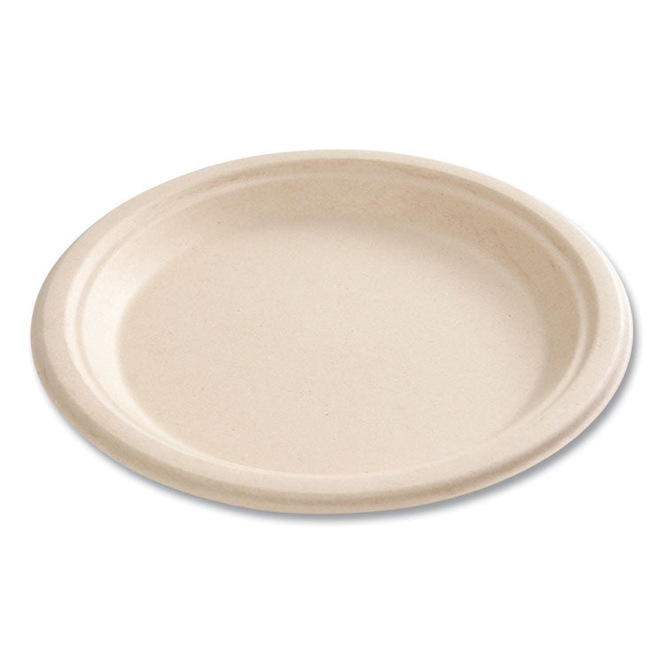 Bagasse PFAS-Free Dinnerware, Plate, Sugarcane, 9" dia, Tan, 500/Carton