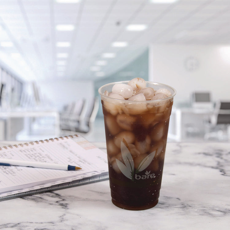 Bare Eco-Forward RPET Cold Cups, 24 oz, Plastic, Clear/Green/Orange, 50/Pack, 12 Packs/Carton