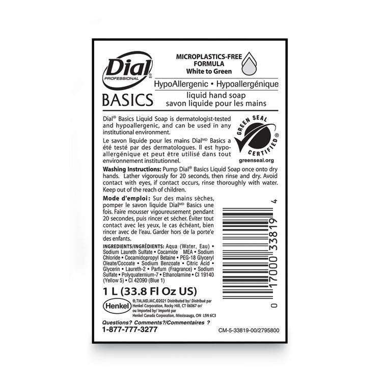 Basics Liquid Hand Soap is a mild soap that is gentle on skin. Its rich, creamy lather rinses clean and leaves hands feeling soft and smooth. Dermatologist-tested and hypoallergenic formula nourishes and helps soothe dry skin, making it perfect for any commercial setting. Microplastics-free formula. Soap Type: Moisturizing Liquid; Volume Capacity: 1 L; Scent: Unscented; Personal Soaps Application: Hand.