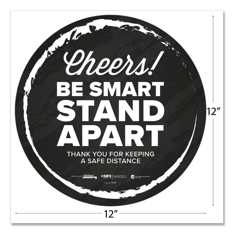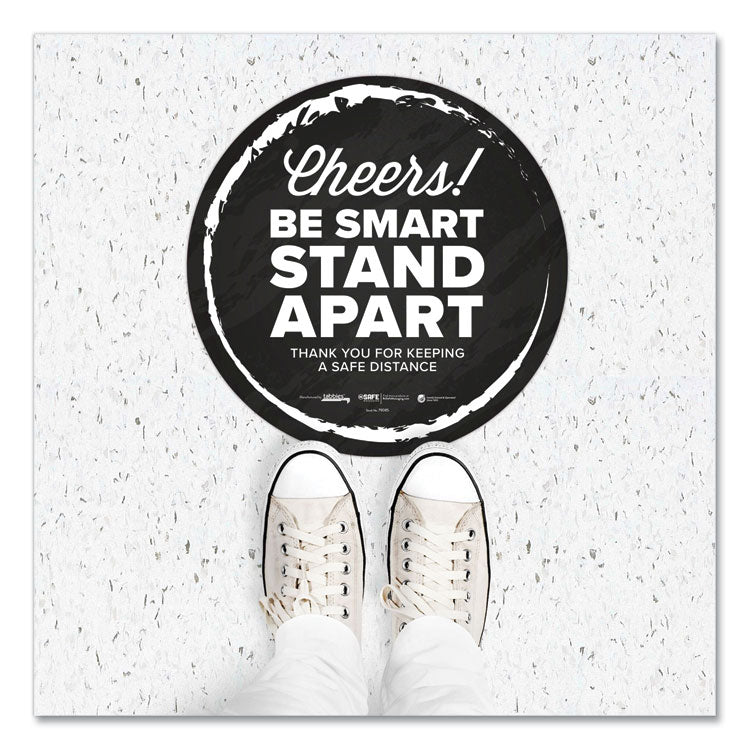 Besafe Messaging Floor Decals, Cheers;be Smart Stand Apart;thank You For Keeping A Safe Distance, 12" Dia, Black/white, 6/ct