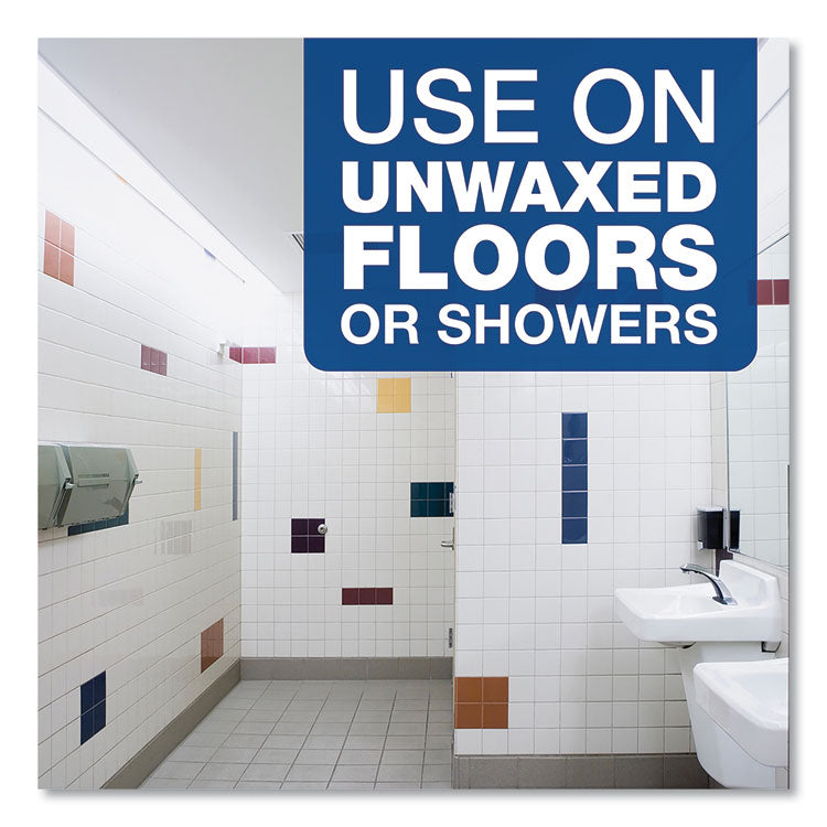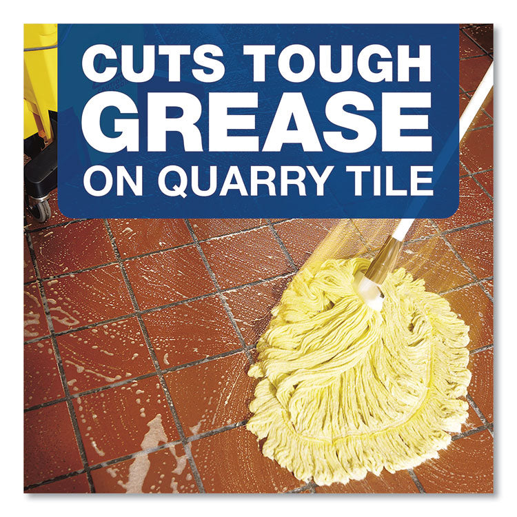 Spic and Span Floor Cleaner with Bleach is a two-in-one floor and multi purpose cleaner, combining grease-cutting power with chlorine bleach. The concentrated cleaner formula cuts through tough, greasy soils to help save time and labor. It also cleans and whitens mop heads and removes unpleasant odors. This multi surface cleaner is a great cleaning solution for quarry tiles and other unwaxed floors, exhaust filter screens and hoods, cooler ceilings, walls and racks, mop heads, and showers. Spic and Span all purpose cleaner can also be used on outside areas, such as concrete and blacktops, parking spots, dumpster areas, trash containers, and sidewalks. Application: Floor Cleaner/Degreaser; Applicable Material: Vinyl Composition Tile (VCT); Solid Vinyl Tile (SVT); Linoleum; Sheet Vinyl; Laminates; Glass; Sealed Cement/Concrete; Ceramic Tile; Terra Cotta; Terrazzo; Quarry Tile; Polished/Sealed Stone; Dirt Types: Bacteria; Dust; Food Residue; Germs; ;Grease; Grime; Scuff Marks; Soil; Spills; Scent: Fresh.
