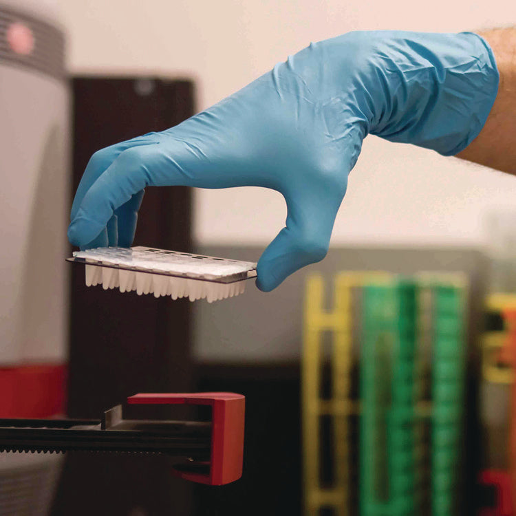 Gloveworks® Exam Blue Nitrile Gloves feature an extended cuff-longer than a standard glove-to offer greater protection over your forearm and wrist from bodily fluids, bloodborne pathogens, and contaminants. They are more than twice as thick as standard nitrile gloves for heavy-duty jobs. M-XL, sold 50 per box, 10 boxes per case. Glove Style: Disposable; Wrist Style: Beaded Cuff; Material(s): Nitrile; Thumb Style: Straight.
