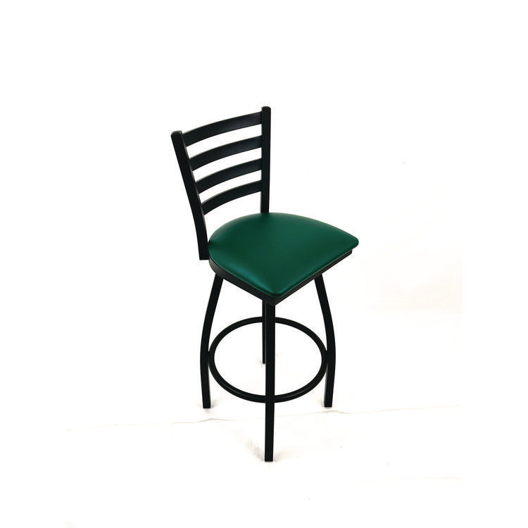 Introducing the perfect seating solution for your home or business-the Boggs Series metal framed barstool with vinyl seat pad. This sleek and modern design is built to provide maximum comfort and durability, all while adding a touch of style to your space. With a sturdy metal frame, this barstool is sure to stand up to even the busiest of environments. The frame is built to last, ensuring that you have a reliable seating option for years to come. The vinyl seat pad is not only comfortable, but also easy to clean and provides a soft and supportive surface that is perfect for extended use making it ideal for high-traffic areas. Whether you're using this barstool in your dining room, kitchen, or bar area, it's sure to impress and is the perfect addition to any indoor space. Recommended Application Area(s): Breakroom & Foodservice; Seat Color: Green; Back Color: Black; Color Family: Green.