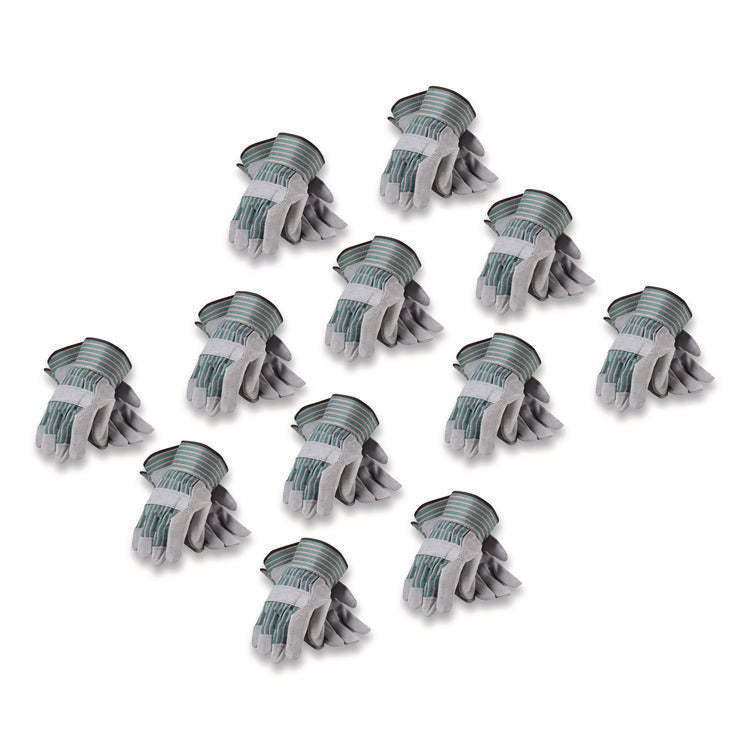 Bronze Series Leather/fabric Work Gloves, Large (size 9), Gray/green, 12 Pairs