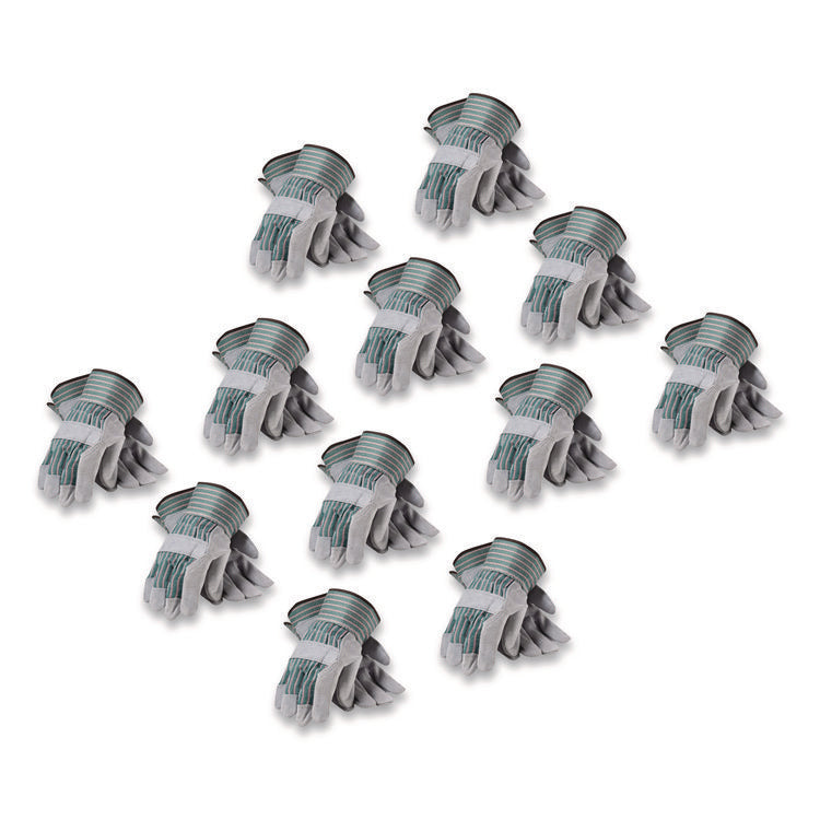 Bronze Series Leather/fabric Work Gloves, Small (size 7), Gray/green, 12 Pairs