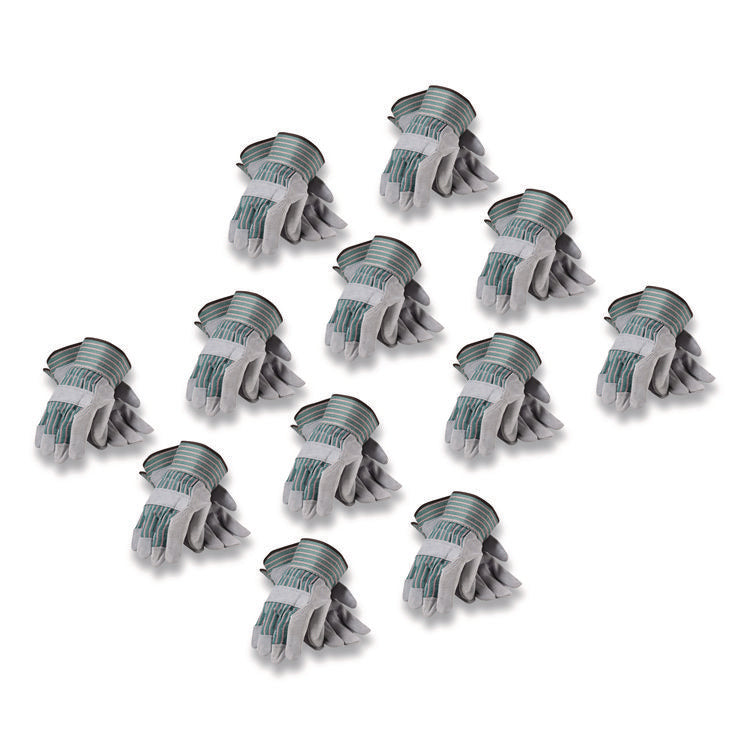 Bronze Series Leather/fabric Work Gloves, X-Large (size 10), Gray/green, 12 Pairs