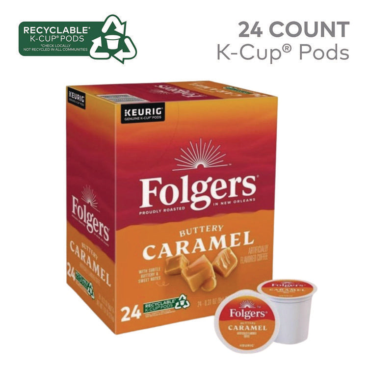 Rich, creamy, buttery caramel flavored medium roast coffee. May receive packaging with Caramel Drizzle or Buttery Caramel label, both are caramel flavored. Beverage Type: Coffee; Flavor: Buttery Caramel; Roast Type: Medium; Product Packaging: K-Cup®.