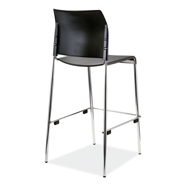 Cafetorium Bar Height Stool, Supports Up to 500 lb, 31" Seat Height, Black Seat, Black Back, Chrome Base