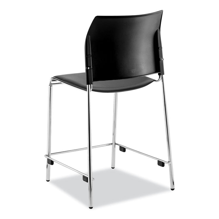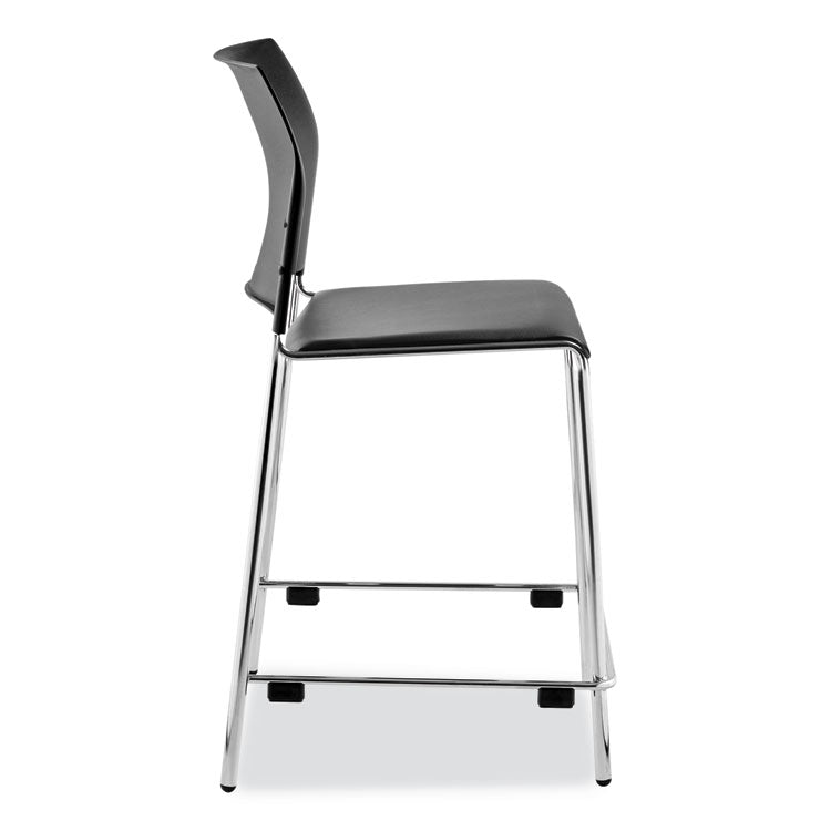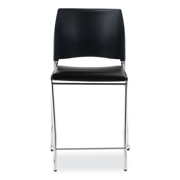 Cafetorium Counter Height Stool, Padded, Supports Up to 300 lb, 24" Seat Height, Black Seat, Black Back, Chrome Base