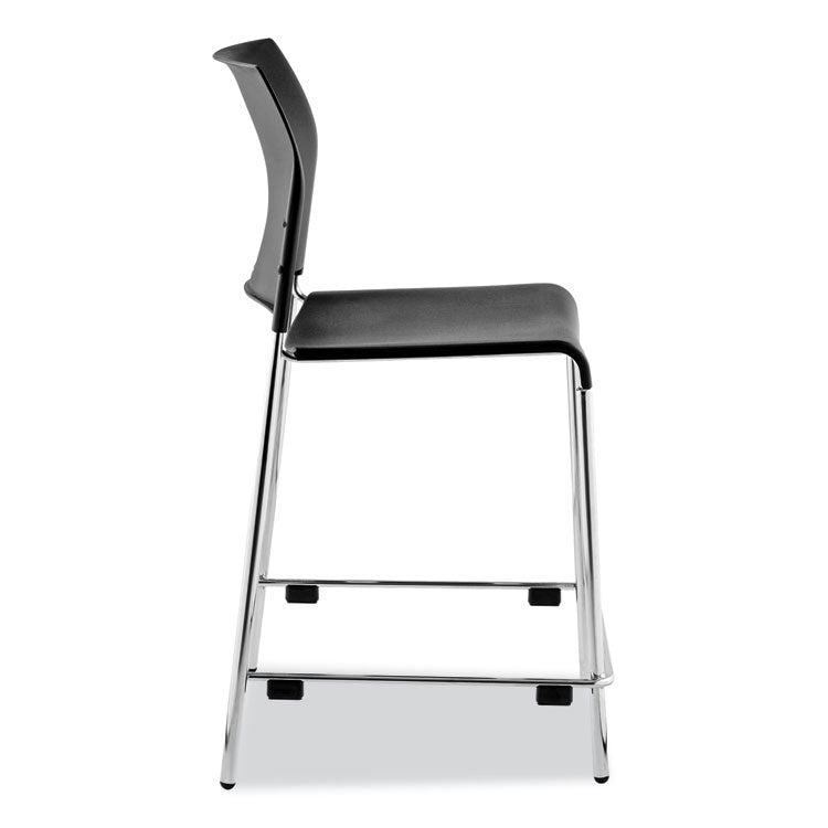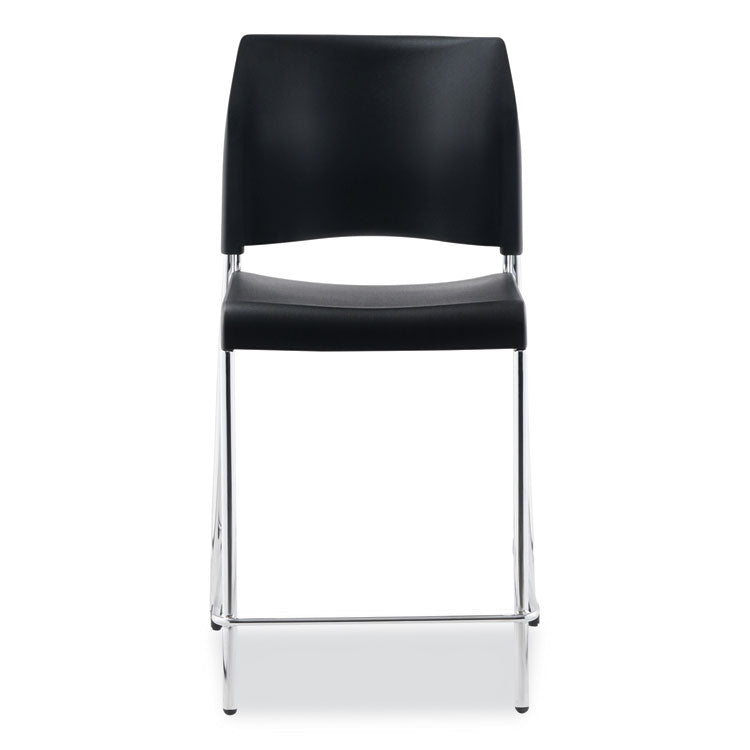 Cafetorium Counter Height Stool, Supports Up to 300 lb, 24" Seat Height, Black Seat, Black Back, Chrome Base