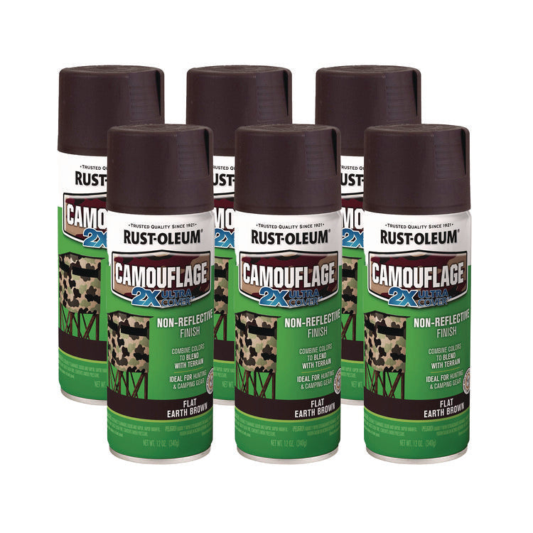 Camouflage Spray Paint, Flat Earth Brown, 12 oz Aerosol Can, 6/Carton