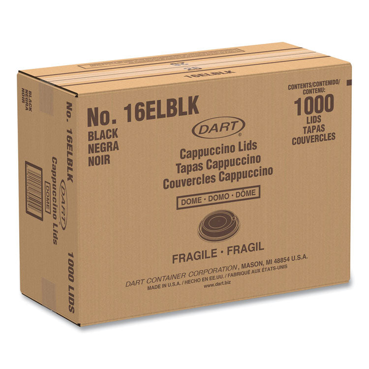 Dome design is perfect for frothy hot drinks such as cappuccino and chai. Sipper cut enables heat-retaining, lid-on enjoyment. When used with companion Dart cups, lid fits snuggly and securely. Fits: 12 oz to 24 oz Hot Cups; Material Type: Plastic; Material(s): Plastic; Color(s): Black.